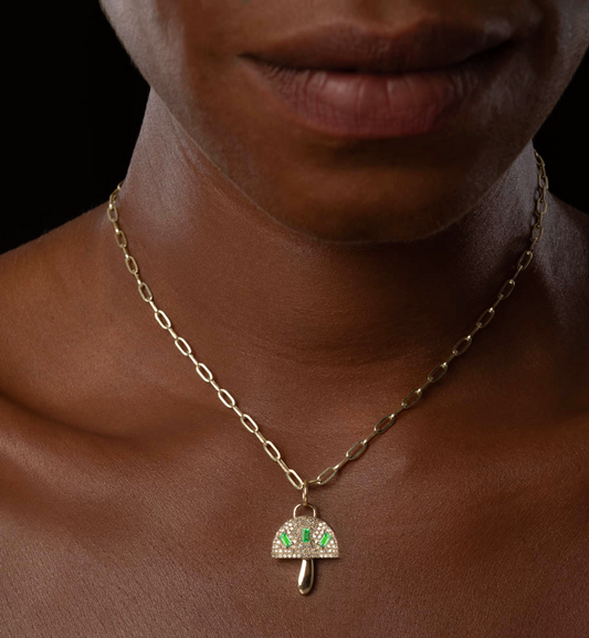 Emerald and Diamonds Mushroom Charm